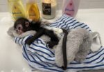 Great with kids & other pets! Rare & cute! Health guarantee, 7 weeks old, easiest baby, on formula no food yet, takes the bottle easily. Used to diapers & very easy to diaper. Perfect health. Zero concerns. Comes with EVERYTHING. Lots of goodies! Toys, formula, diapers, wipes, blanket & more! Precious!